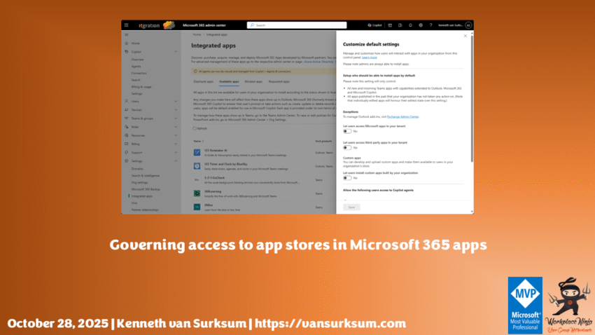 This article outlines how to centrally govern app store access across Microsoft 365 apps, explains where these controls are configured, and provides a reference design to help administrators standardize governance. It concludes with a short look ahead to Microsoft 365 Copilot, whose introduction has shown why strong governance over app integrations is critical.