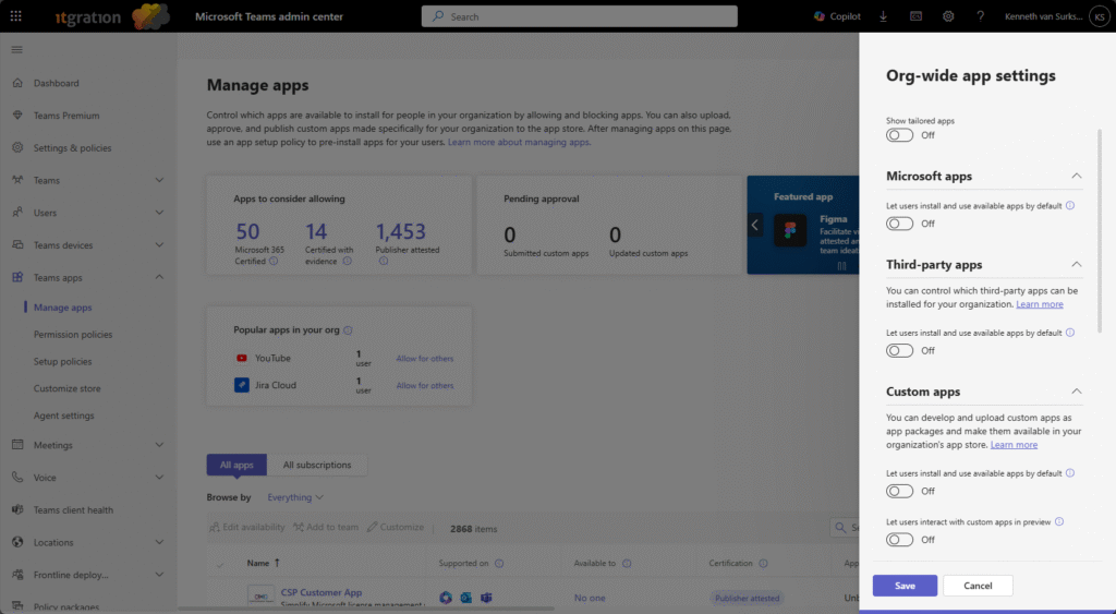 Path: Teams admin center → Teams apps → Manage apps -> Actions -> Org-wide App Settings