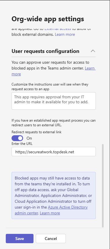 - Redirect user requests for blocked apps to an internal ITSM portal for evaluation.