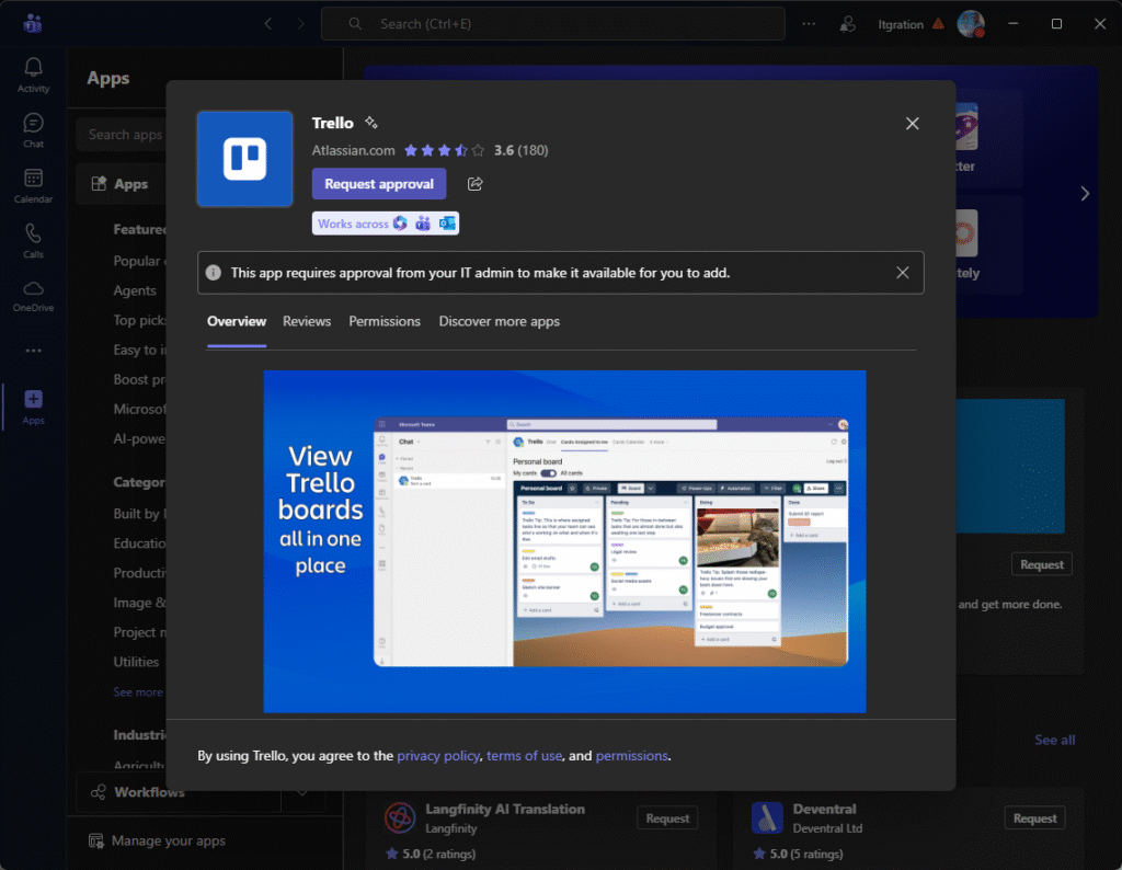 From an end-user perspective this is very friendly, instead of adding the App, the button changes to Request approval. In the teams admin Center the Administrator can then see the requested App and approve if necessary.