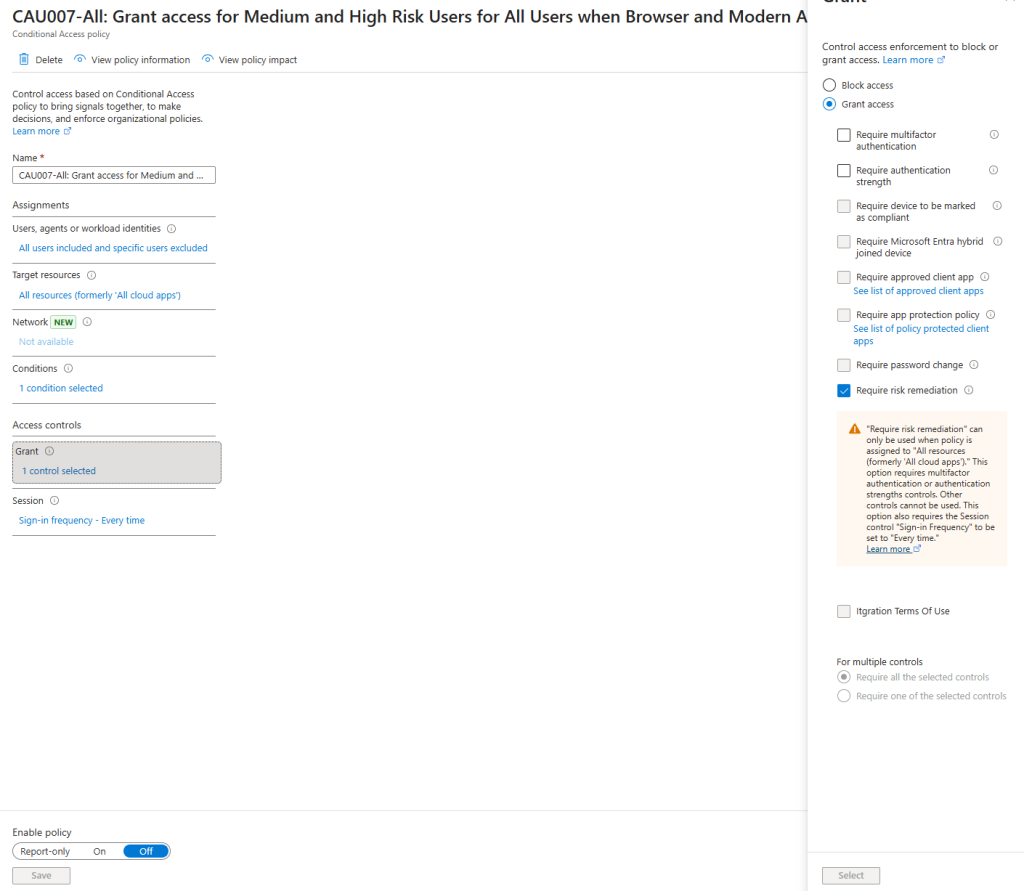 When this grant control is selected, Conditional Access automatically applies: